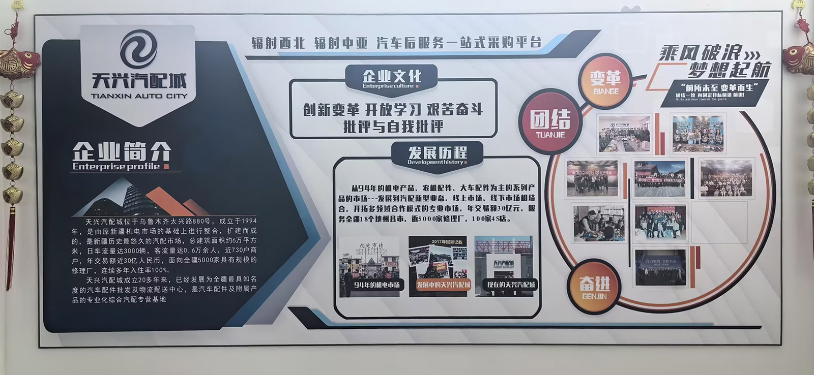 天興汽配城位于烏魯木齊太興路880號,成立于1994年,是由原新疆機電市場的基礎(chǔ)上進行整合,擴建而成的,是新疆歷史最悠久的汽配市場,總建筑面積約6萬平方米,日車流量達3000輛,客流量達0.6萬余人,近730戶商戶,年交易額近30億人民幣,面向全疆5000家具有規(guī)模的修理廠,連續(xù)多年入住率100%。