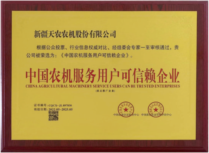 中國農(nóng)機(jī)服務(wù)用戶可信賴企業(yè)