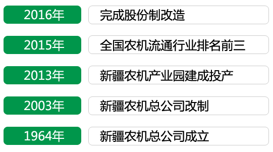 新疆天農(nóng)農(nóng)機股份有限公司為自治區(qū)農(nóng)機公司的改制企業(yè),在傳承50年的農(nóng)機情懷的同時,創(chuàng)新機制,激發(fā)潛能,致力于新疆的現(xiàn)代農(nóng)業(yè)產(chǎn)業(yè),歷經(jīng)改制重組、二次創(chuàng)業(yè)、高速發(fā)展的三個重要階段。
