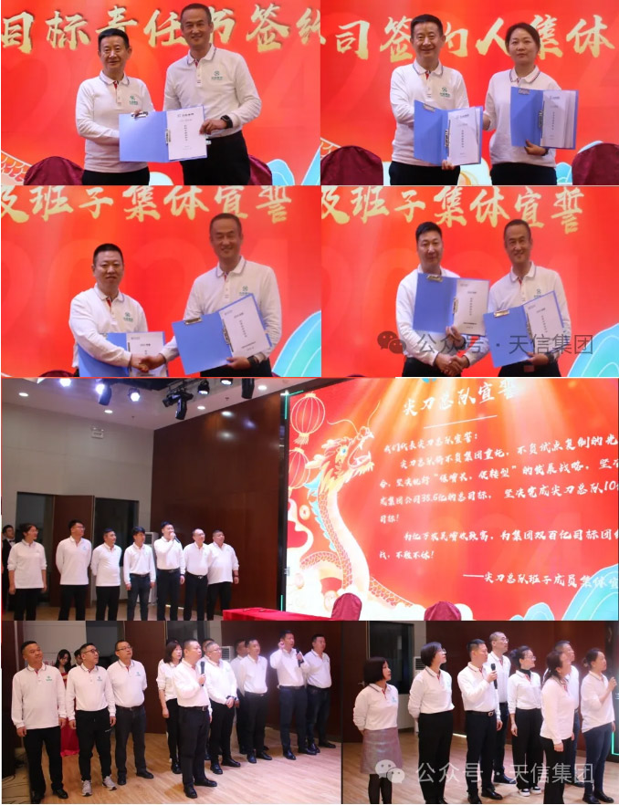集團(tuán)、尖刀總隊(duì)、突擊總隊(duì)和集團(tuán)分公司2024年經(jīng)營(yíng)目標(biāo)責(zé)任書簽約環(huán)節(jié)振奮人心,簽約人及班子集體宣誓:志為億萬(wàn)農(nóng)民增收致富和集團(tuán)雙百億目標(biāo)團(tuán)結(jié)奮戰(zhàn),不勝不休!