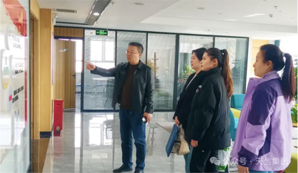 2024年3月29日下午,天山區(qū)總工會和解放南路街道領(lǐng)導(dǎo)一行六人,在工會組織建設(shè)負(fù)責(zé)人胡靜文的帶領(lǐng)下到新疆天信集團(tuán),圍繞創(chuàng)建“職工之家”的相關(guān)工作現(xiàn)場進(jìn)行指導(dǎo)、交流。